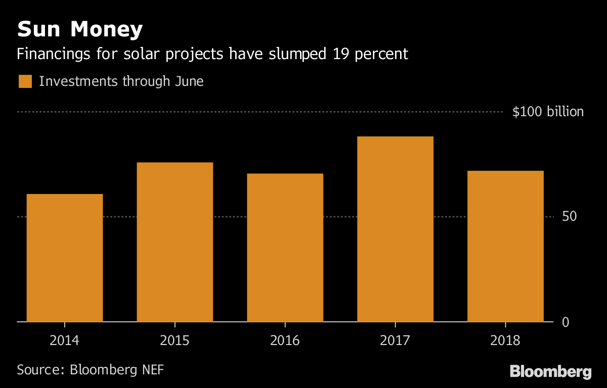 風(fēng)電投資在中國(guó)也有所增長(zhǎng),上半年增加到176億美元。太陽(yáng)能則完全是一個(gè)不同的狀態(tài),投資下降29至351億美元。這部分是因?yàn)橹袊?guó)政府的“531光伏新政”計(jì)劃正在放慢太陽(yáng)能發(fā)展的步伐。